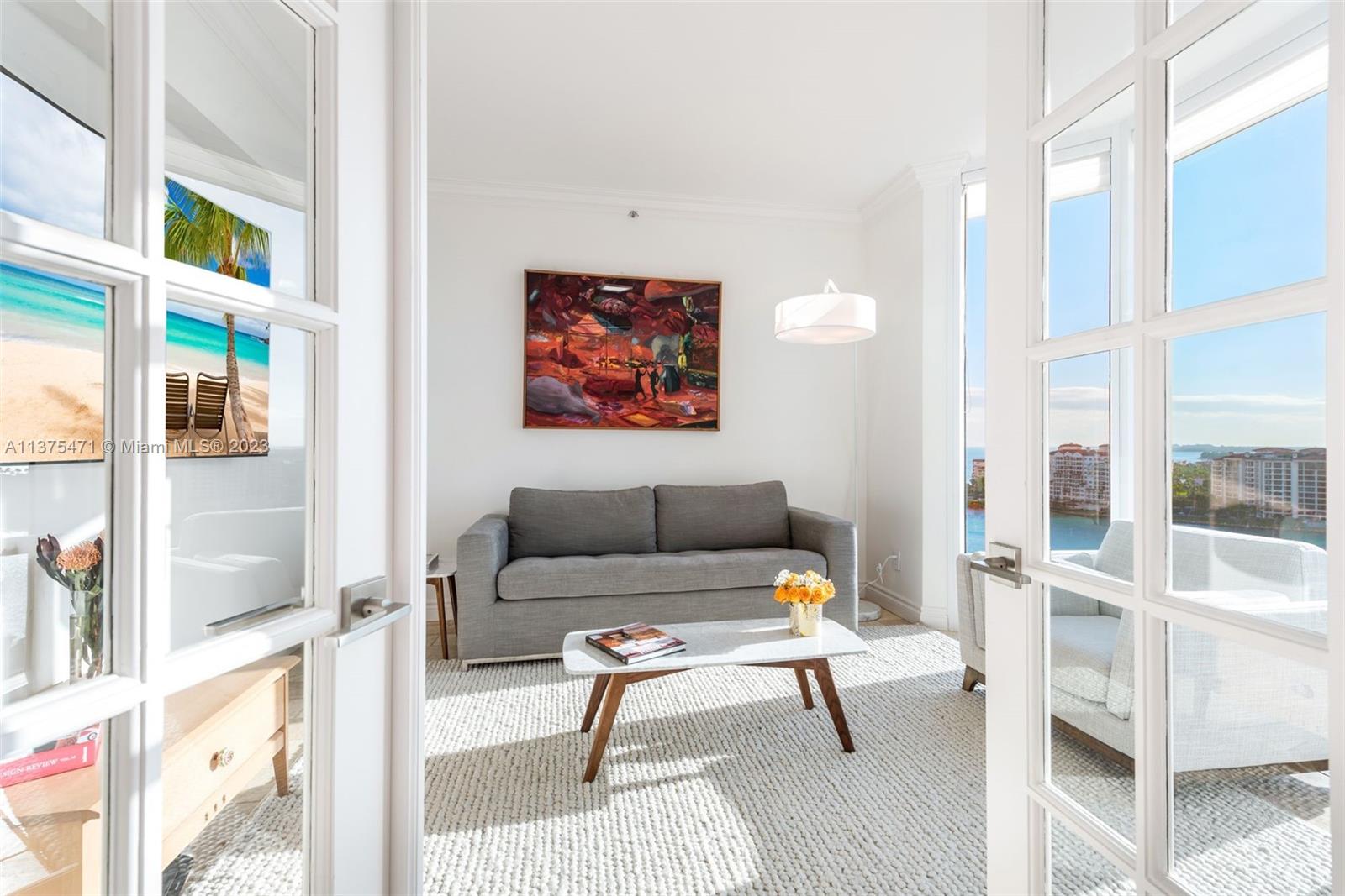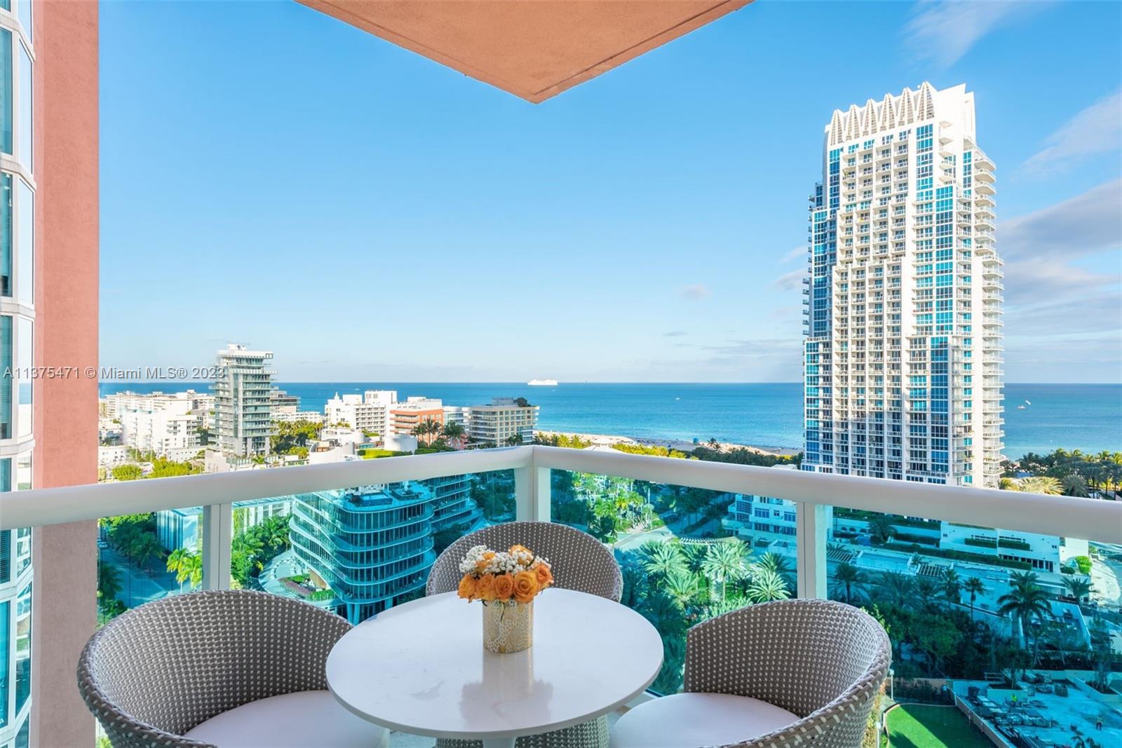 Live the ultimate Miami Beach lifestyle in the coveted South of Fifth neighborhood. Experience panoramic unobstructed views of the Atlantic Ocean, Biscayne Bay, and Miami Skyline. This 2-bedroom, 2.5 bathroom plus den features reclaimed Jerusalem limestone throughout, an open flow floor plan with magnificent natural light and 2 terraces showcasing spectacular sunrise and sunset views. This unique residence offers a luxurious, yet relaxed lifestyle just steps to the beach, lush parks, top rated restaurants and the marina with 5-star amenities including concierge, valet, security, tennis, spa/gym, dog walk & heated pool. All assessments have been paid in full. Can be rented furnished.