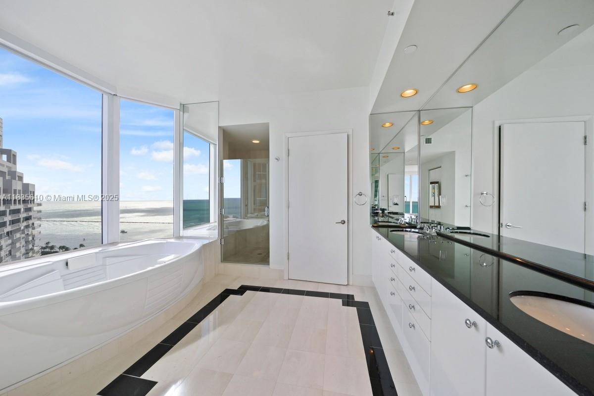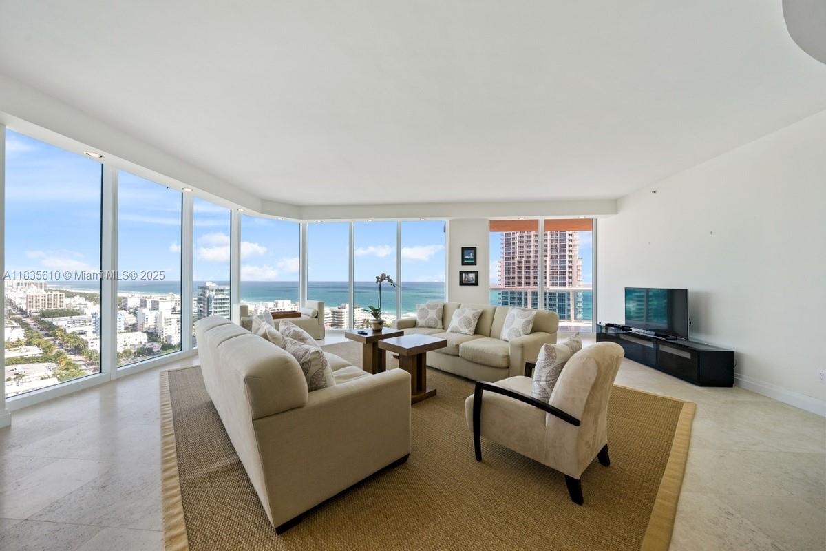 Panoramic 270 degree views of the Atlantic Ocean and South Beach from this spectacular 3-bedroom residence at the prestigious Portofino Tower. Bright open floor plan with floor-to-ceiling glass throughout. Separate guest wing including 2 guest bedrooms. Lots of natural light throughout. Expansive master bathroom with jacuzzi tub facing the ocean, separate walk-in shower and large double vanity. Walk-in closets. Brand new amenities including 2 pools with jacuzzis, tennis/pickleball/basketball court, outdoor lounging areas, serenity garden & more! Portofino Tower is located South of Fifth in Miami Beach - a luxury neighborhood in South Beach offering ultra-high-end condominiums, top-rated restaurants, beautiful beaches, the Miami Beach Marina and South Pointe Park.