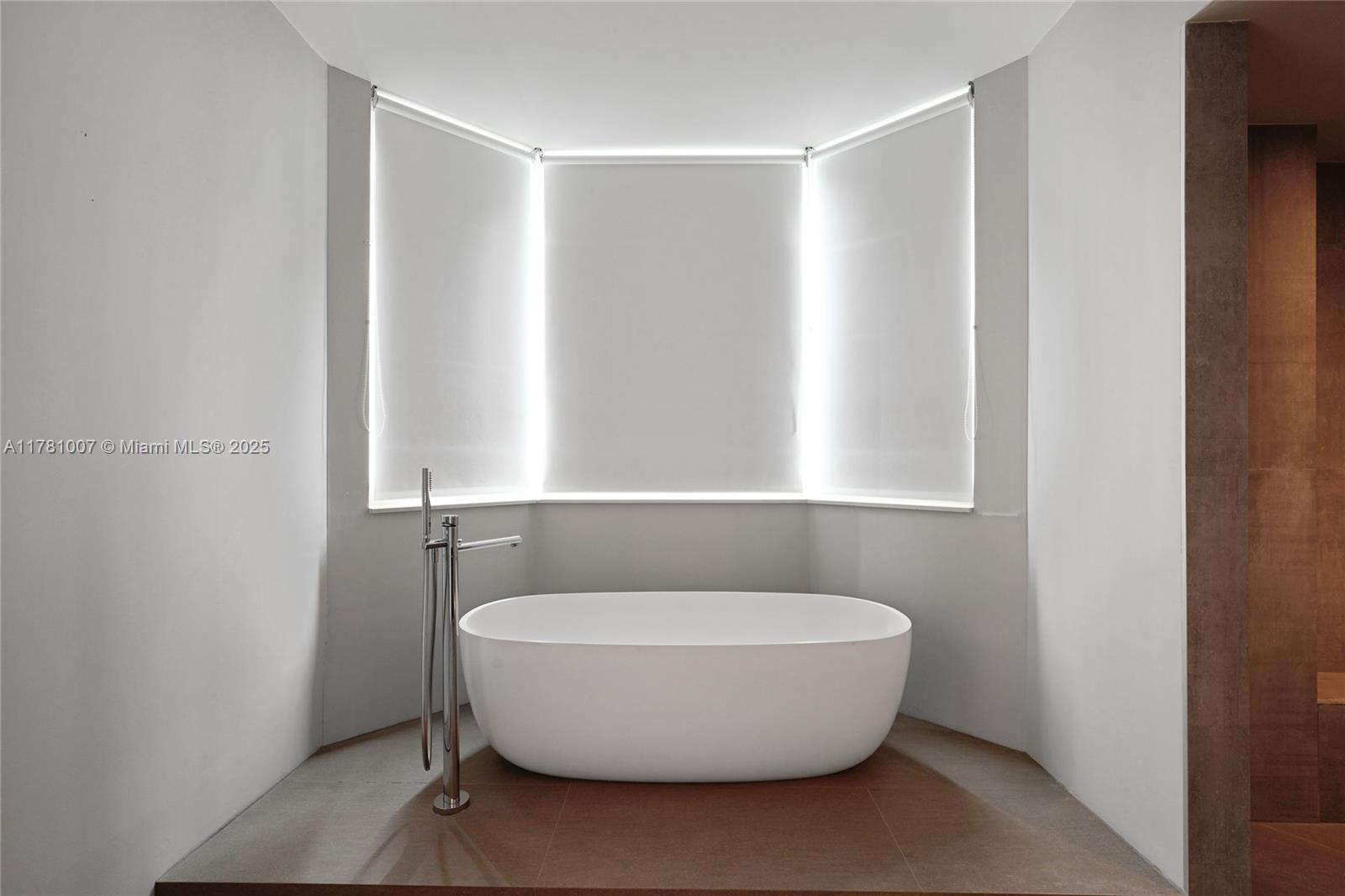 Luxurious first-floor 3-bed, 2.5-bath, 2,340 sq ft corner unit in the iconic Portofino Tower near South Beach. Enter through a grand foyer into a spacious living area with wraparound terrace, floor-to-ceiling windows, 9-ft ceilings, electric shades, and generous closets. Features include wood and 48x48-sized luxury tile flooring, a sleek European kitchen with Sub-Zero refrigerator, wine fridge, and induction range, plus spa-like baths with modern fixtures and a stand-alone tub in the primary suite. Enjoy 24-hour security, concierge, tennis courts, fitness center, spa, and a soon-to-be-new pool deck. Steps from world-class dining—including Joe’s Stone Crab—and South Pointe Beach.