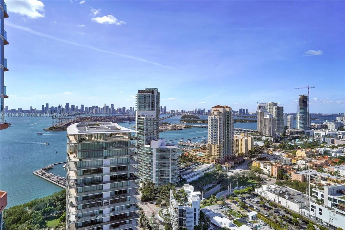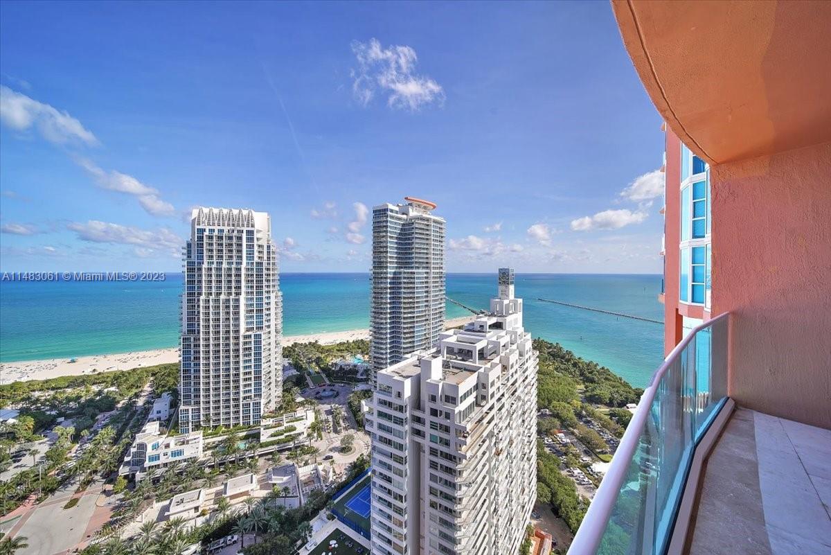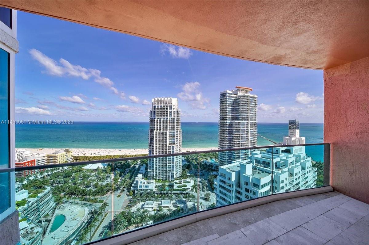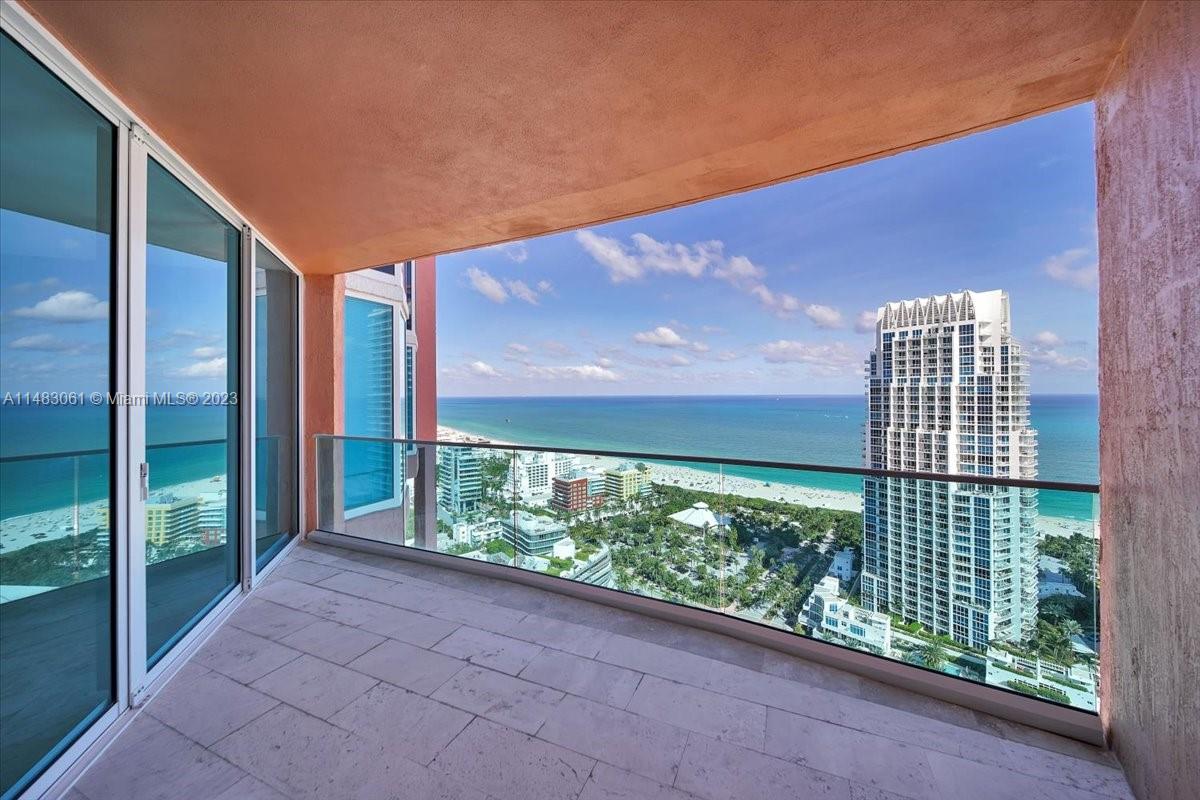 Immaculate flow-through residence at Portofino Tower showcasing breathtaking unobstructed penthouse views of the Atlantic Ocean, Biscayne Bay & Miami Skyline from every angle & 2 private oversized sunrise & sunset balconies. Meticulously maintained, cleaned & detailed - 3206 is ready for the most discerning resident. Separate living & formal dining room & large open kitchen with panoramic views. Private master bedroom with large walk-in shower, jacuzzi & two walk-in closets. Portofino Tower is a luxury community with a world class fitness center/spa on the 29th floor, new pool with towel service, hot tub, lounges & cabanas, 2 new tennis/pickleball courts, 24/7 valet, security, and concierge services. Steps to the beach, restaurants, marina and all night life South of Fifth. Must see!