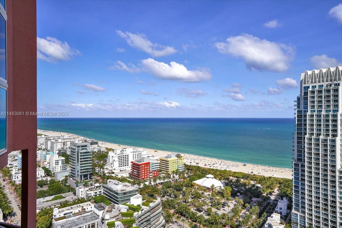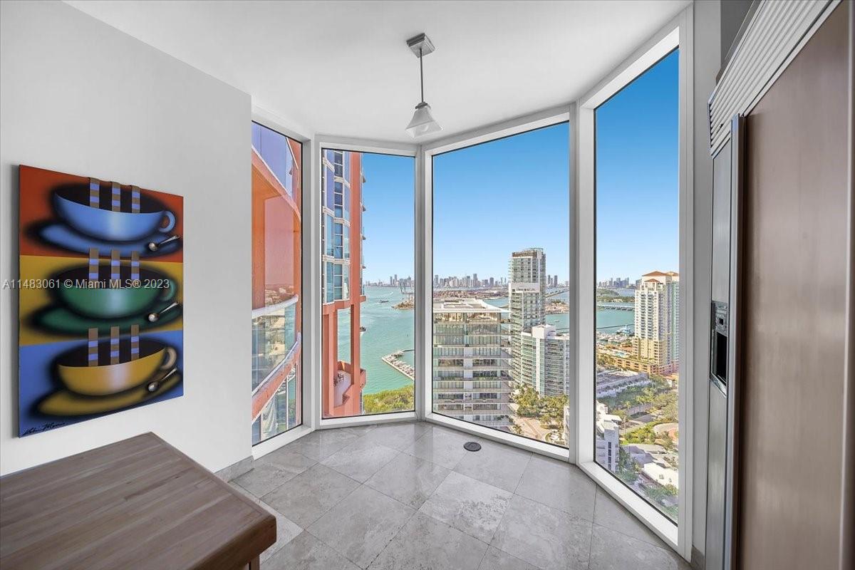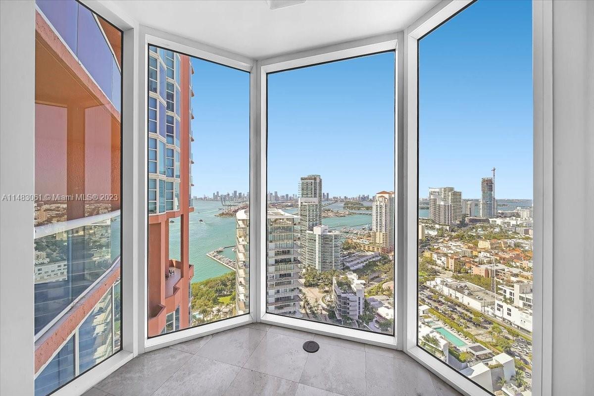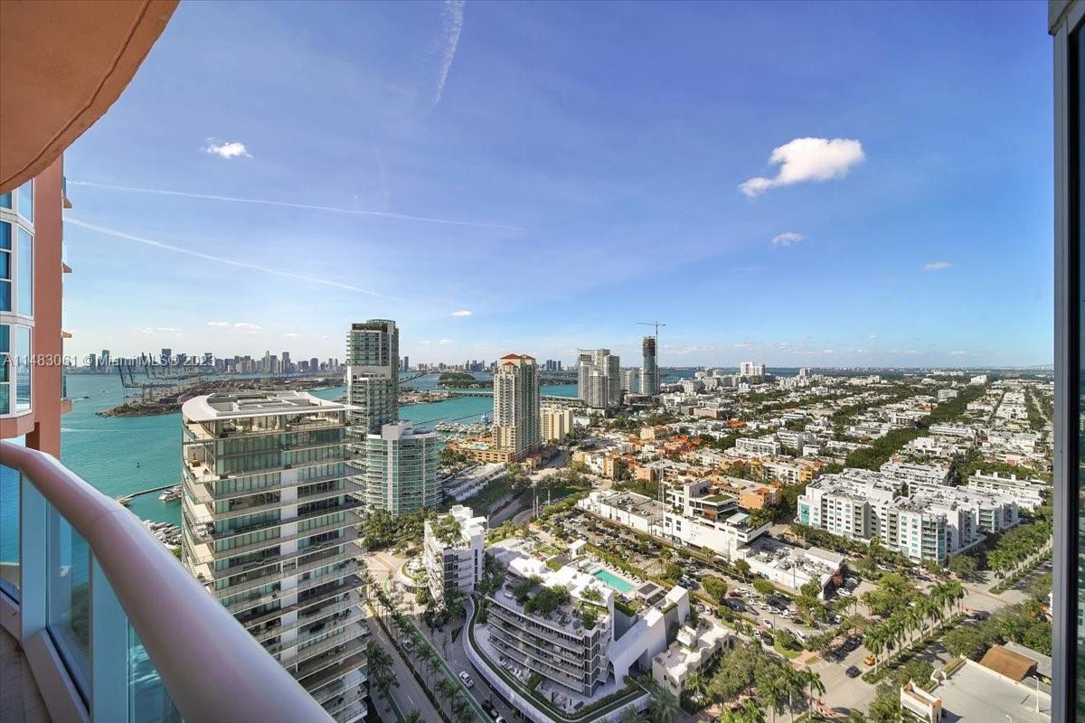 Immaculate flow-through residence at Portofino Tower showcasing breathtaking unobstructed penthouse views of the Atlantic Ocean, Biscayne Bay & Miami Skyline from every angle & 2 private oversized sunrise & sunset balconies. Meticulously maintained, cleaned & detailed - 3206 is ready for the most discerning resident. Separate living & formal dining room & large open kitchen with panoramic views. Private master bedroom with large walk-in shower, jacuzzi & two walk-in closets. Portofino Tower is a luxury community with a world class fitness center/spa on the 29th floor, new pool with towel service, hot tub, lounges & cabanas, 2 new tennis/pickleball courts, 24/7 valet, security, and concierge services. Steps to the beach, restaurants, marina and all night life South of Fifth. Must see!