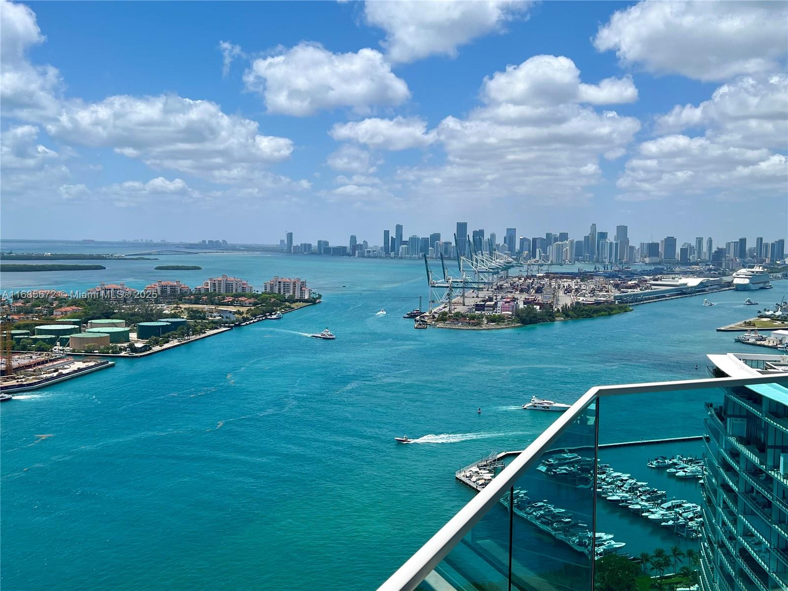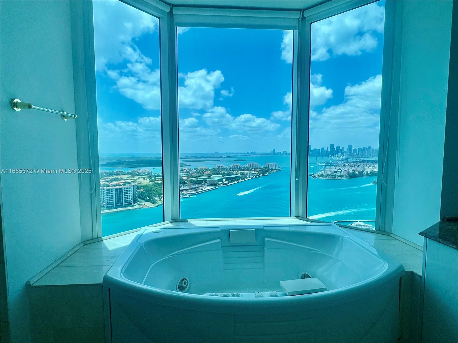Rarely available incredible high floor residence at the prestigious Portofino Tower. Breathtaking 270 degree panoramic views of the Atlantic ocean, Fisher Island, Miami Beach, Biscayne Bay, Miami skyline and both sunrises & sunsets every day & night. Stunning floor-to-ceiling windows throughout & two large terraces. Large eat-in kitchen with ocean views & direct terrace access. Stunning master suite with two walk-in closets, 2 bathrooms & jacuzzi tub with sunset views overlooking the Bay & skyline. Live in one of South Beach's most iconic buildings in the exclusive South of Fifth neighborhood. Full service building features a gym/spa-in-the-sky, 24 hour valet & security, concierge, swimming pool, and much more! Short stroll to the beach, high-end restaurants, lush parks, marina & nightlife