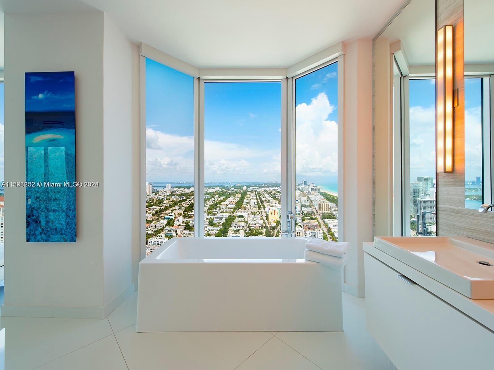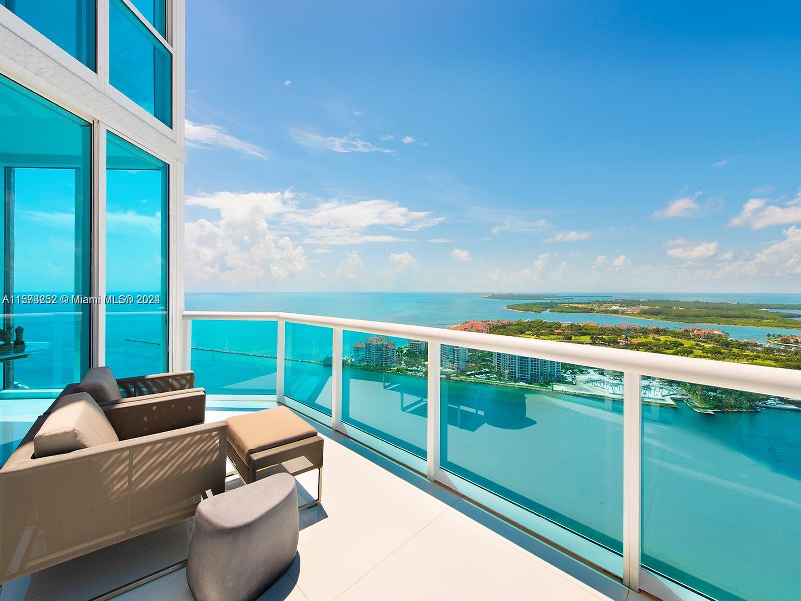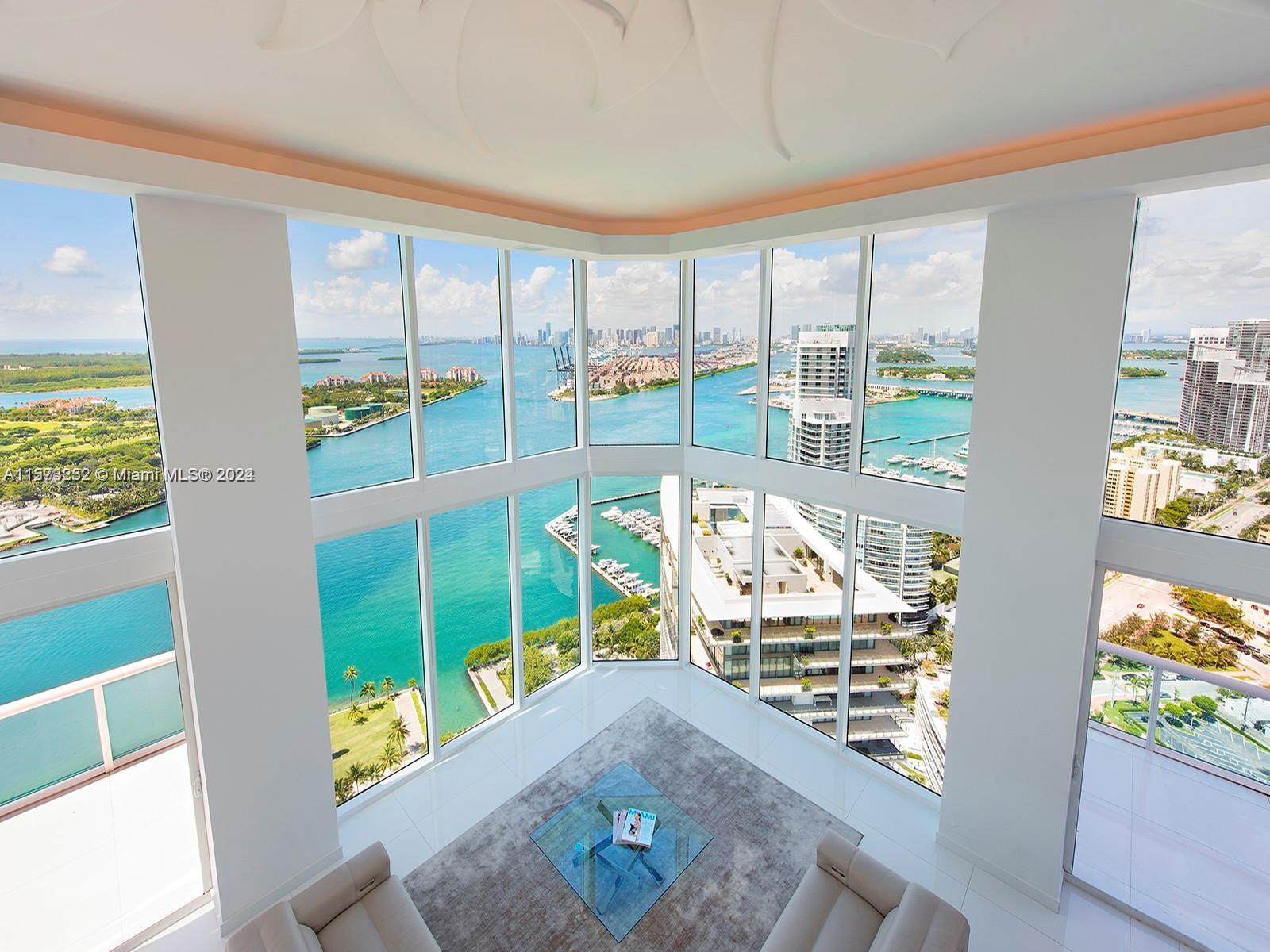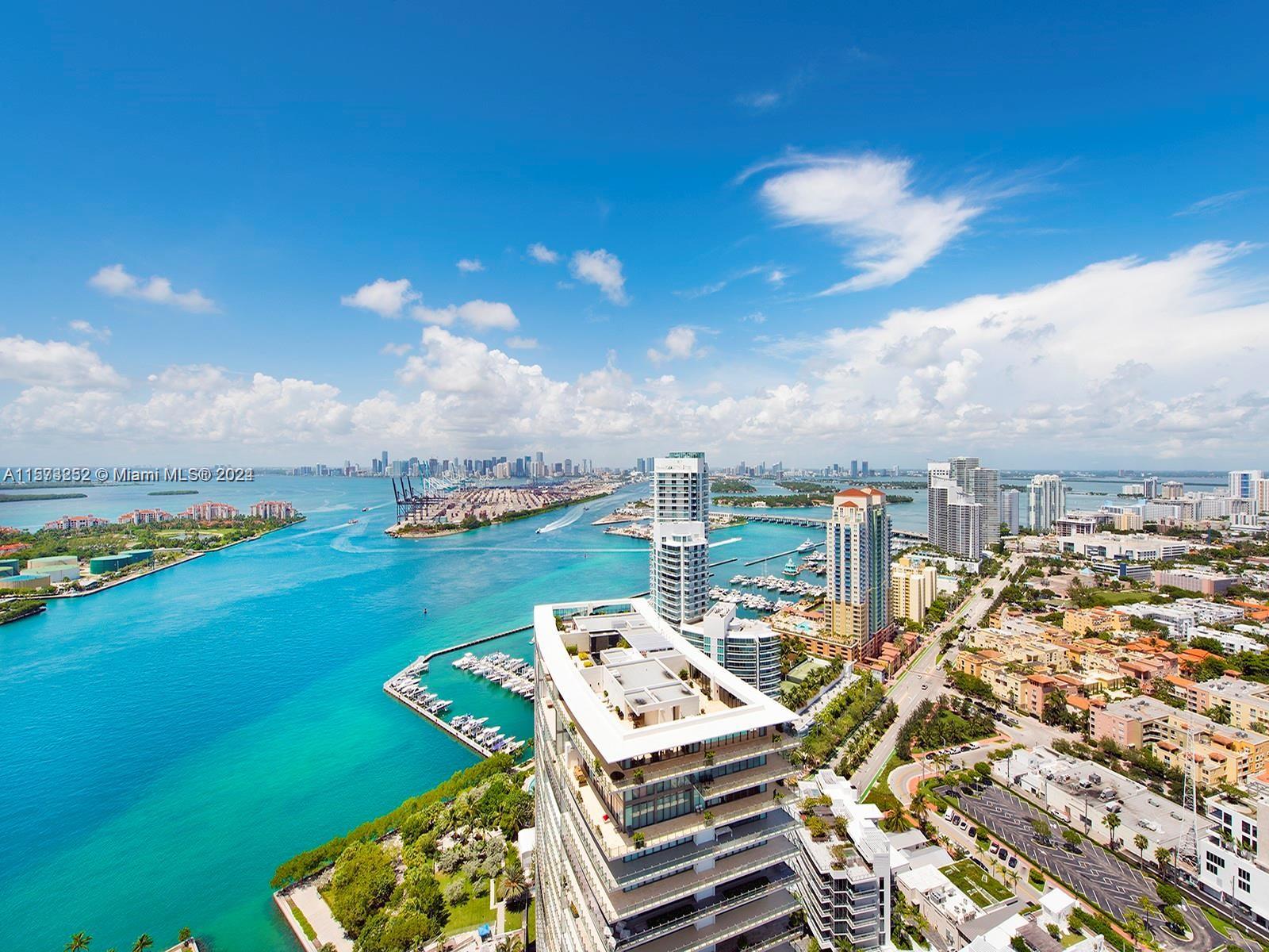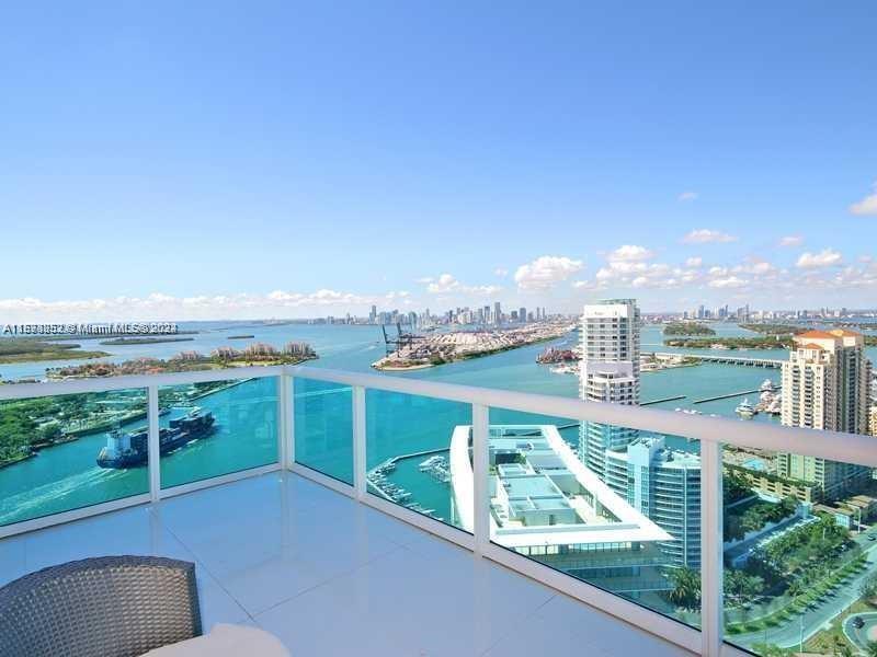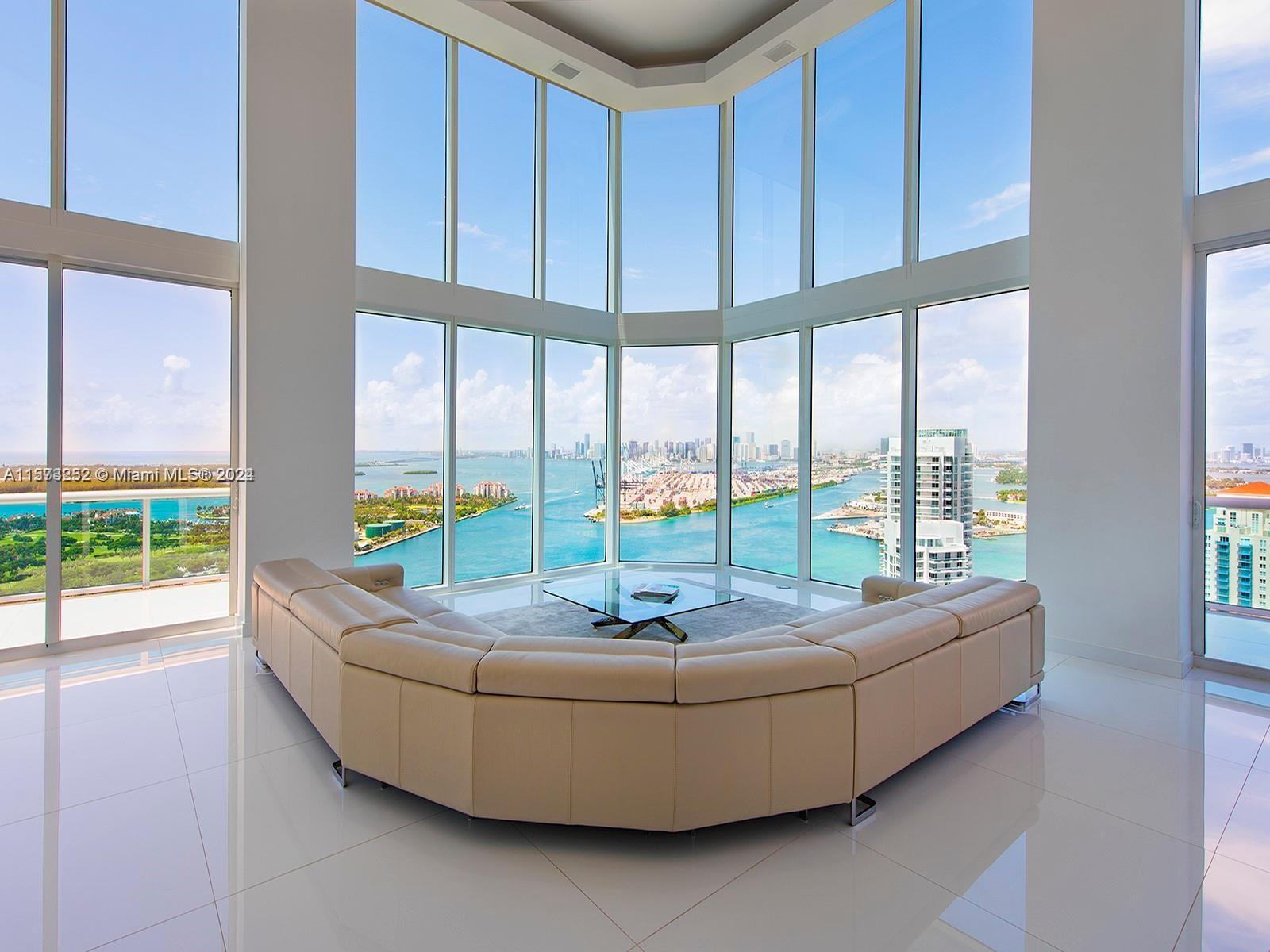It really doesn't get better than this! Spectacular 3-story Lower Penthouse in the best neighborhood of one of the most coveted cities in the world...SOFI of South Beach! Infinite views of Biscayne Bay, Fisher Island, Downtown Miami skyline, South Beach, Port of Miami, the Atlantic Ocean and glorious sunsets. Penthouse has 20' ceilings with huge floor to ceiling windows, expanses of glass, a 2,300 sq. ft. rooftop outdoor terrace and working kitchen, oversize primary beddroom, top of the line appliances, sound system. Impeccable, luxurious and very sexy! 3 bedrooms, 3 1/2 baths plus great office. Expansive common area. Watch the technicolor sunsets and the cruise ships majestically departing Port of Miami. World class views are truly unforgettable! Small dogs on case by case.