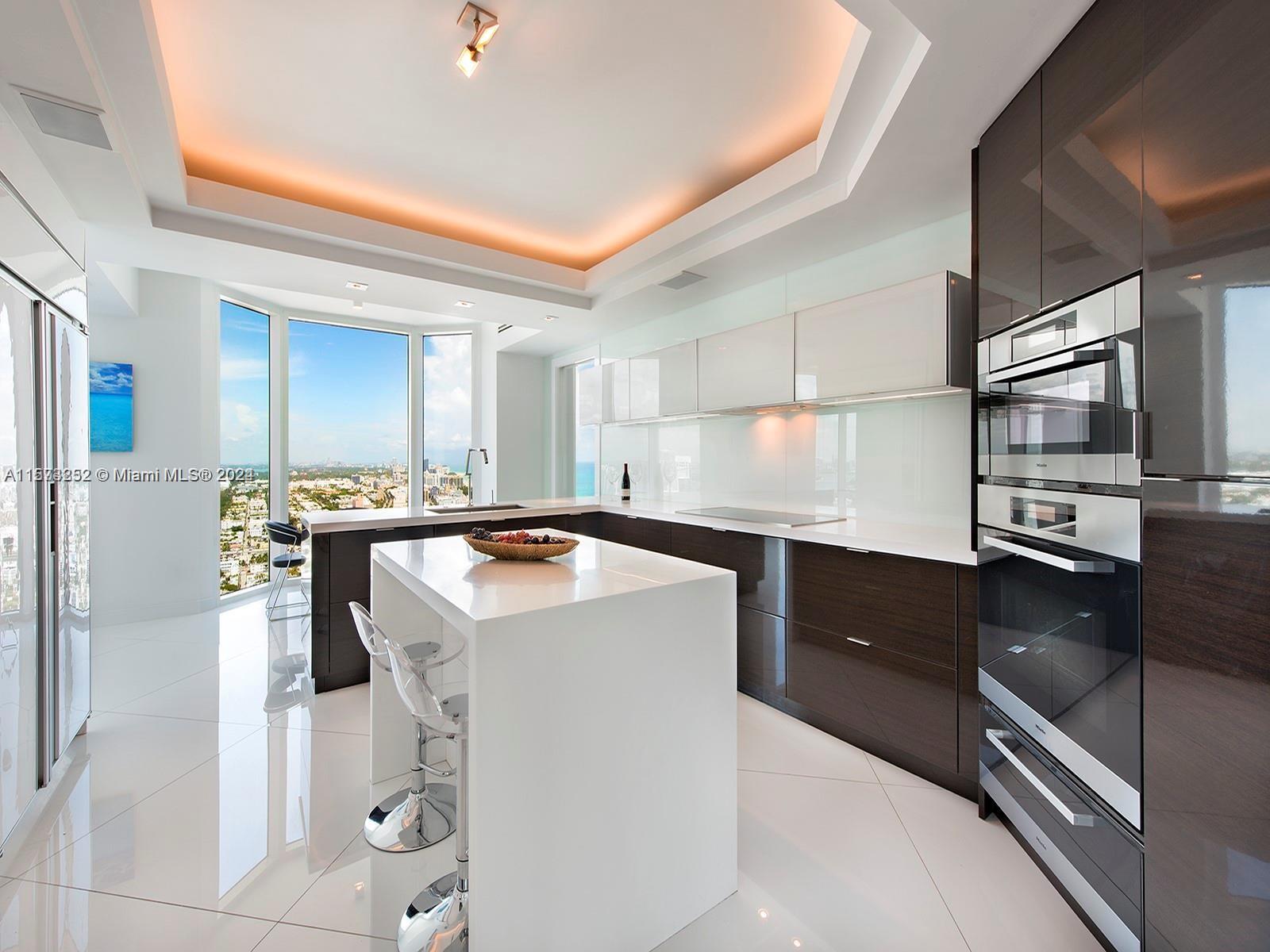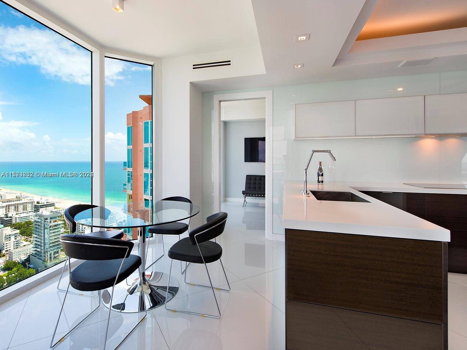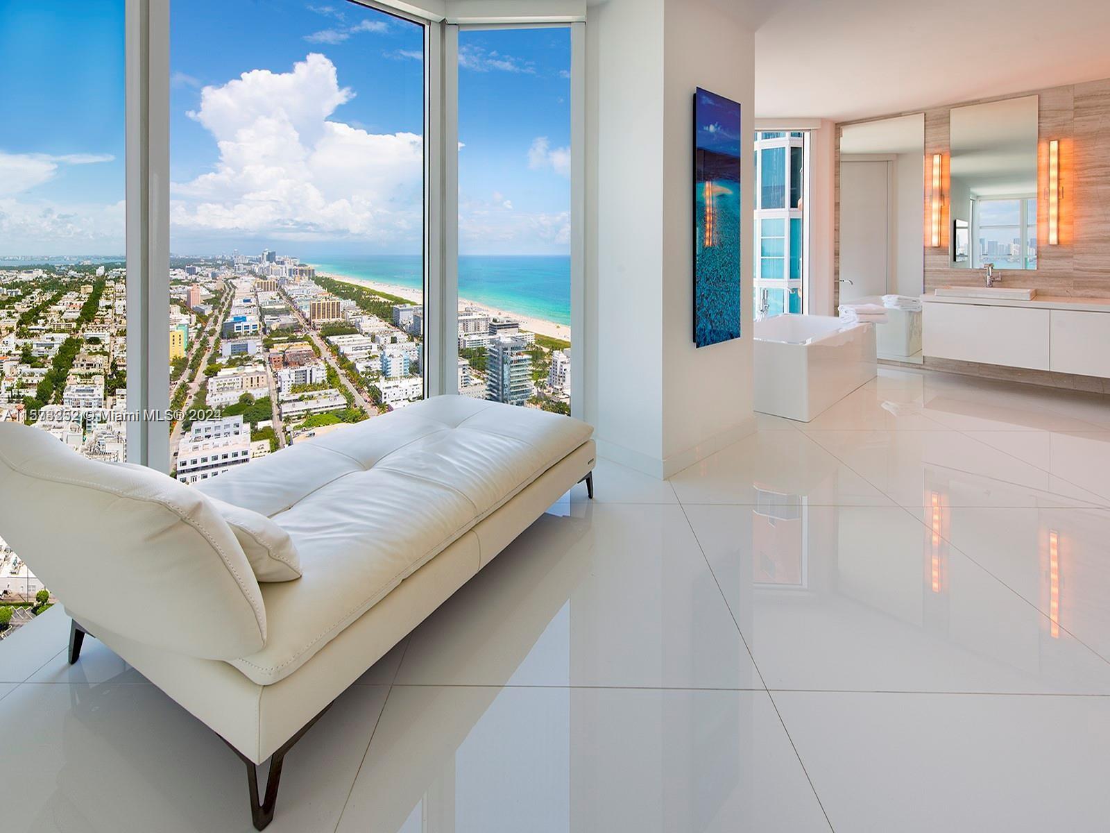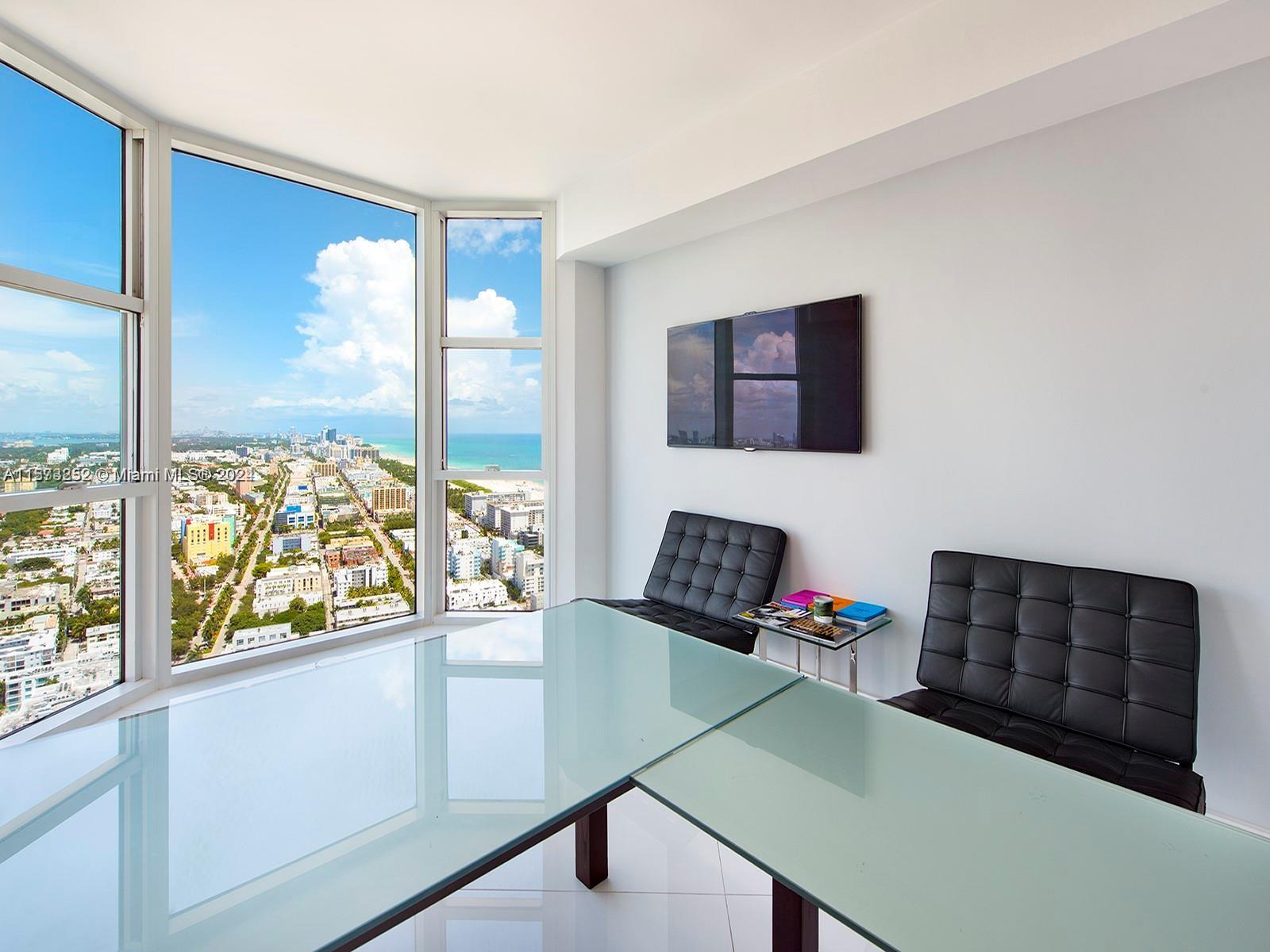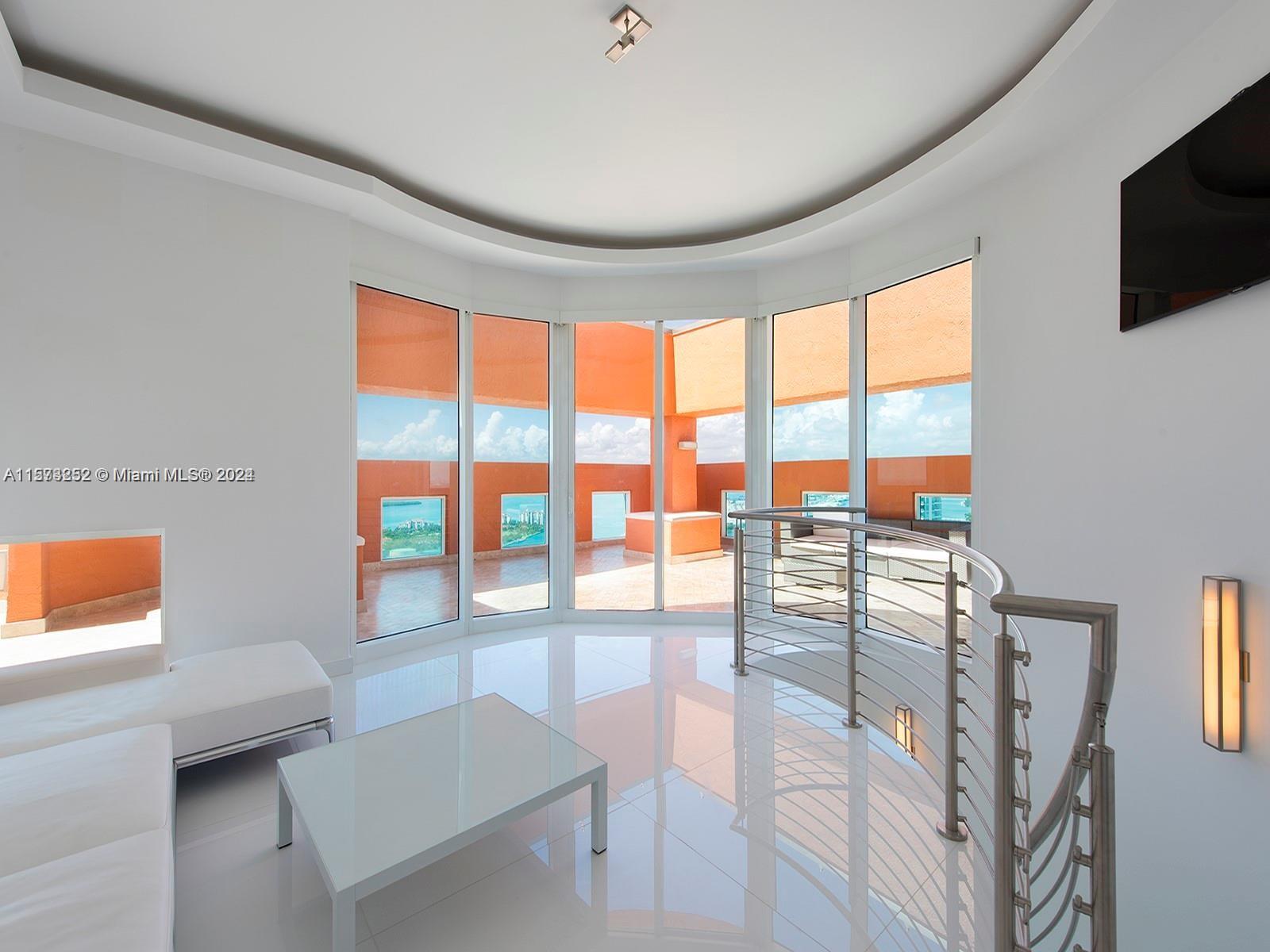 It really doesn't get better than this! Spectacular 3-story Lower Penthouse in the best neighborhood of one of the most coveted cities in the world...SOFI of South Beach! Infinite views of Biscayne Bay, Fisher Island, Downtown Miami skyline, South Beach, Port of Miami, the Atlantic Ocean and glorious sunsets. Penthouse has 20' ceilings with huge floor to ceiling windows, expanses of glass, a 2,300 sq. ft. rooftop outdoor terrace and working kitchen, oversize primary beddroom, top of the line appliances, sound system. Impeccable, luxurious and very sexy! 3 bedrooms, 3 1/2 baths plus great office. Expansive common area. Watch the technicolor sunsets and the cruise ships majestically departing Port of Miami. World class views are truly unforgettable! Small dogs on case by case.
