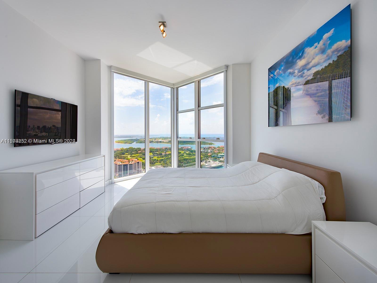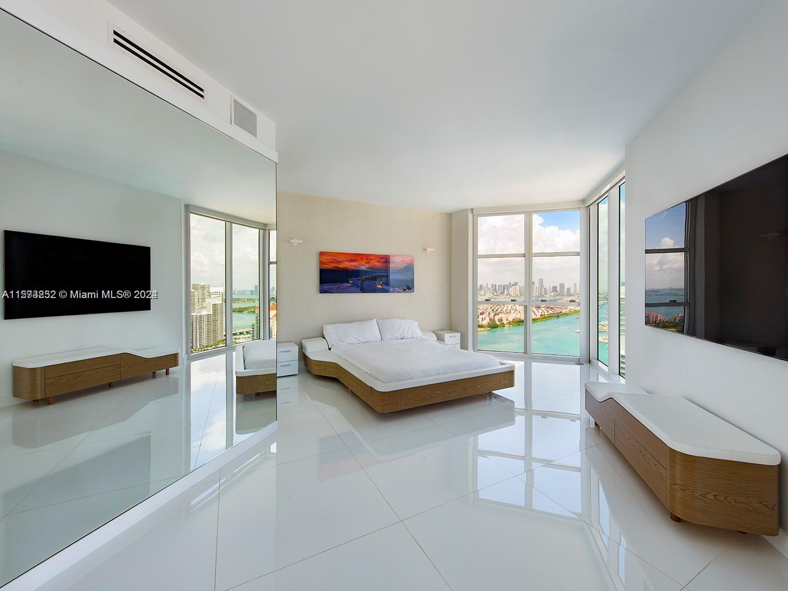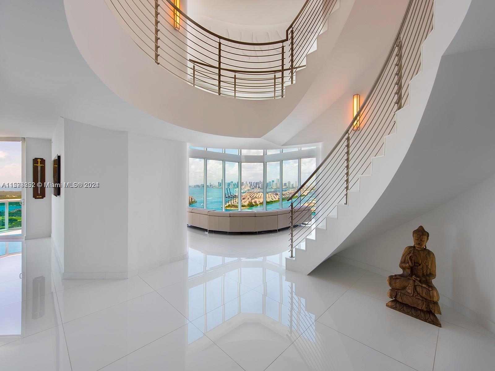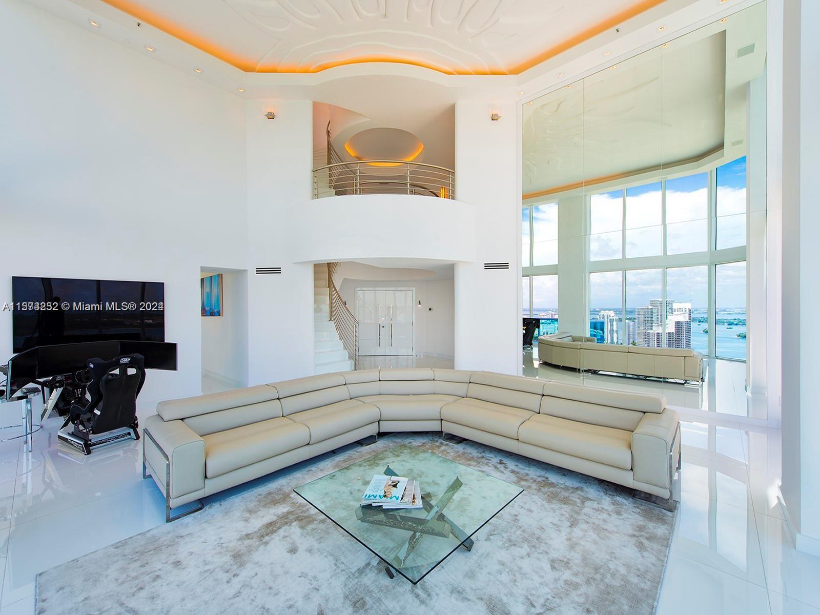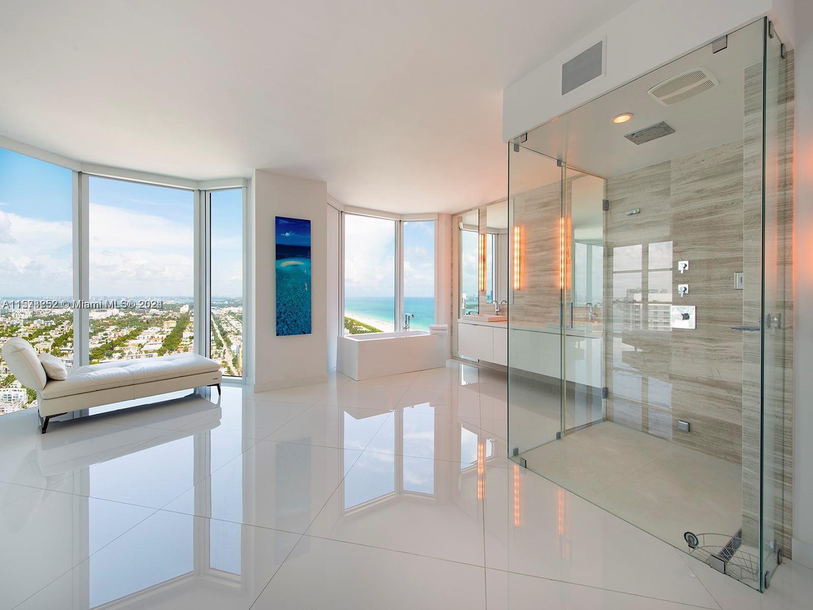It really doesn't get better than this! Spectacular 3-story Lower Penthouse in the best neighborhood of one of the most coveted cities in the world...SOFI of South Beach! Infinite views of Biscayne Bay, Fisher Island, Downtown Miami skyline, South Beach, Port of Miami, the Atlantic Ocean and glorious sunsets. Penthouse has 20' ceilings with huge floor to ceiling windows, expanses of glass, a 2,300 sq. ft. rooftop outdoor terrace and working kitchen, oversize primary beddroom, top of the line appliances, sound system. Impeccable, luxurious and very sexy! 3 bedrooms, 3 1/2 baths plus great office. Expansive common area. Watch the technicolor sunsets and the cruise ships majestically departing Port of Miami. World class views are truly unforgettable! Small dogs on case by case.